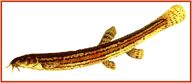 Угревидное тело его сжато с боков. Окраска желтовато-бурая, крапчатая, имеются темные продольные