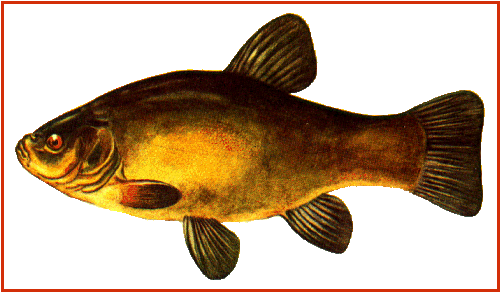 озерах встречается очень темный линь. Вытащенный из воды, он вскоре покрывается светлыми пятнами