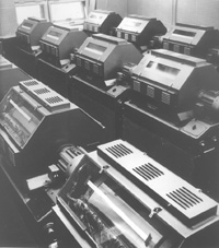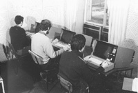 Накопители на магнитной ленте у БЭСМ Третье поколение ЭВМ явилось к нам в образах ЕС-1050, ВК2П-45, СМ-3 и СМ-4. Учебный терминал-класс обрел второе рождение на базе СМ-4 с дисплеями ВТА-2000 в 1983 году. В 1984 году он был передан факультету ВМК, а в ВЦ был открыт аналогичный. В 1986 году удалось арендовать выделенную четырехпроводную линию для экспериментальной сети. Эта линия используется и в действующем ныне канале передачи данных ВЦ – Центр Интернет в Университетской Компьютерной Сети.
